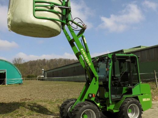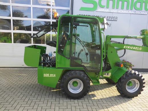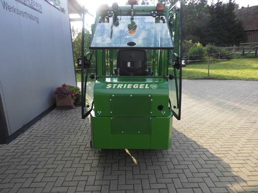 Weitere Ausstattungsmerkmale der Striegel-Lader sind Selbstsperrdifferential auf beiden Achsen, hydraulische Geräteverriegelung, sehr große Hubhöhe 3250 mm, extrem sparsame bärenstarke, wassergekühlte, Direkteinspritzer-Dieselmotoren von Yanmar, die selbstverständlich auch den neuesten Abgasvorschriften entsprechen.